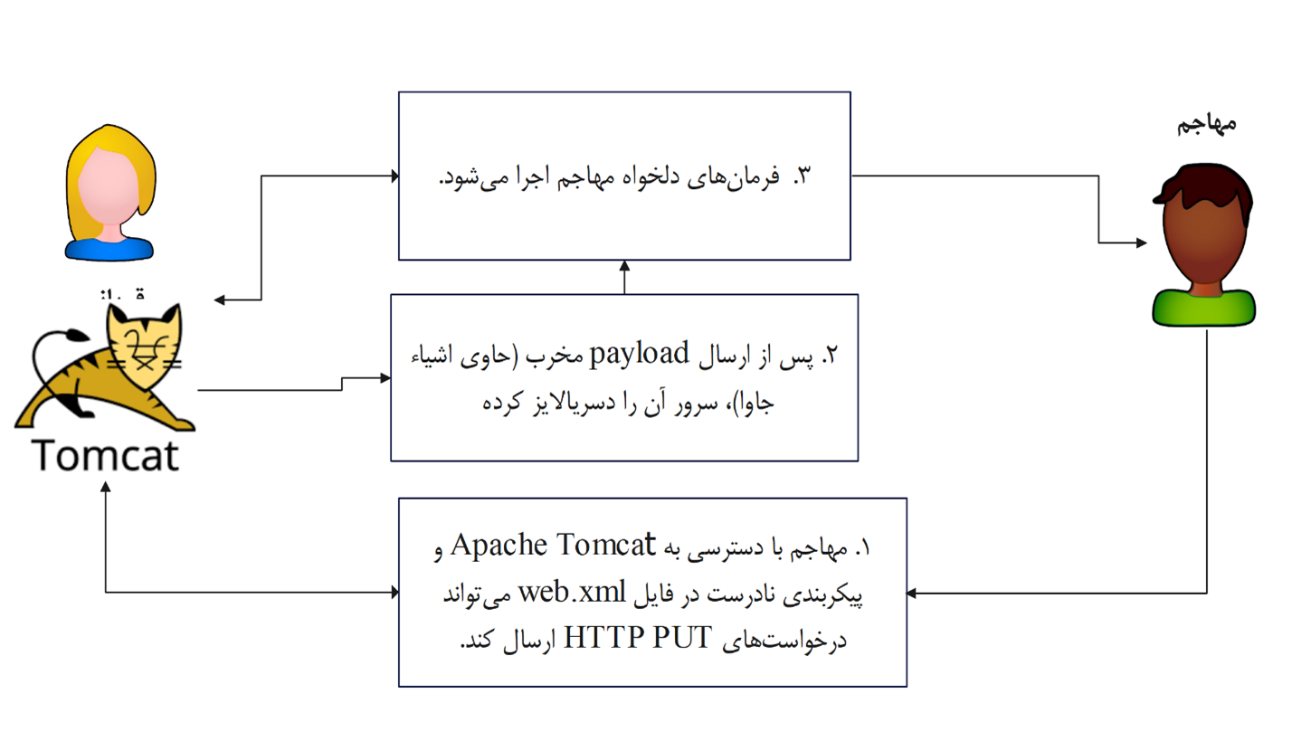این آسیبپذیری به دلیل پیکربندی نادرست در Apache Tomcat رخ میدهد که به مهاجم اجازه میدهد فایلها را با استفاده از نحوه اشتباه پیکربندی وبسرور آپلود کند و از آنها به منظور دسریالایز کردن اشیاء جاوا مخرب استفاده کند. این آسیبپذیری میتواند منجر به اجرای کد از راه دور (RCE) شود، که به مهاجم امکان میدهد کنترل کامل سرور را به دست بگیرد.